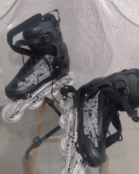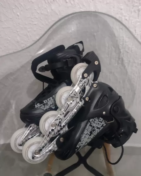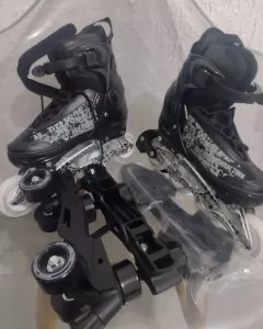 Patines 3 en 1 con, en linea con luz led y equipo de protección incluidos. Completamente nuevosTalla grande (25 a 27 aprox)