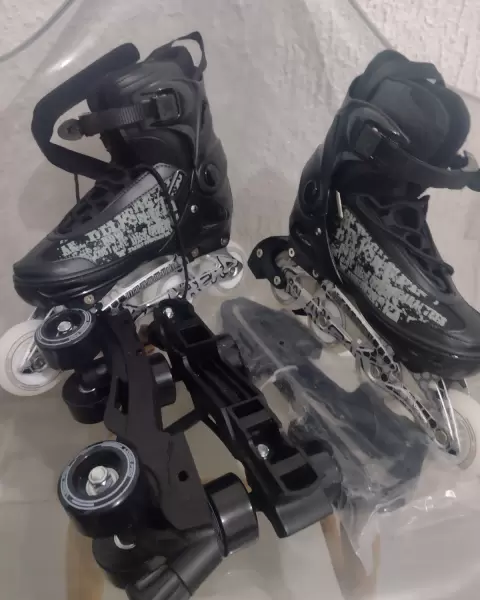 Patines 3 en 1. Patines 3 en 1 con, en linea con luz led y equipo de protección incluidos. Completamente nuevosTalla grande (25 a 27 aprox)
