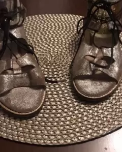 Bonitas sandalias gladiadoras marca Seychelles color café jaspeado con plateado ,súper bonitas.