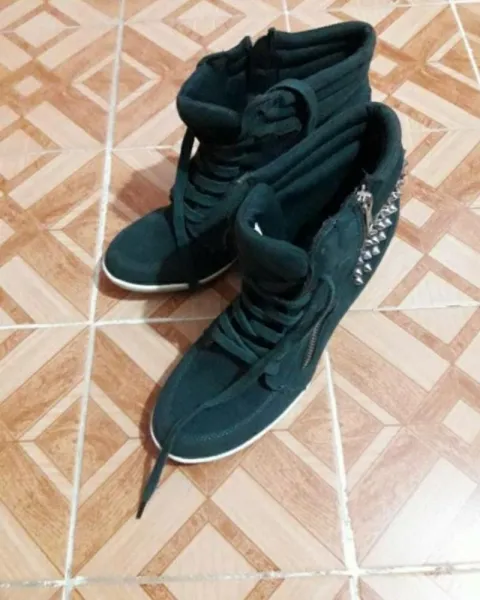 Tenis altos. Zapatos con plataforma color azul ninguna puesta