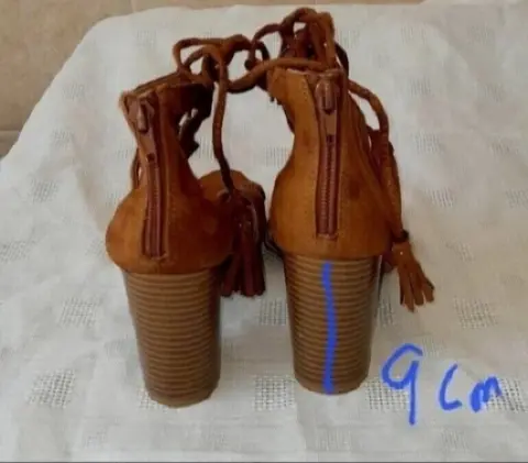 Hermosas zapatillas color marrón, material gamuza, talla 2 1 (2 1/2 ).tacón mide 9cm,son usadas, el único detalle es que la suela está pisada ,lo demás esta en buen estado.