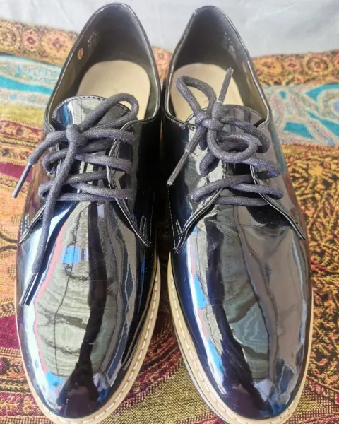 Zapatos de charol color negro con plataforma.Número 6.Sin detalles estéticos, suela en excelente estado.