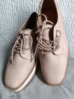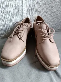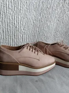 Zapatos de plataforma color nude, tienen agujetas y plataforma de 5 cms. Son del número 4, marca, sólo tienen un pequeño rayón en un costado, pero lo demás está en perfectas condiciones. Son marca Call it Spring.