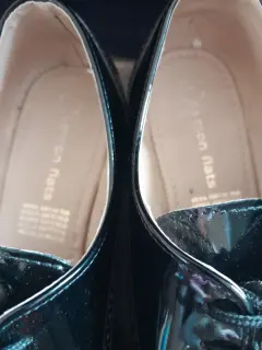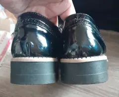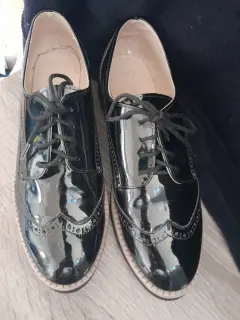 Hermosos zapatos de charol tipo Oxford, con agujetas, usados una vez, sin detalles, no deagate en la suela.