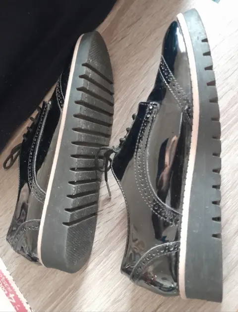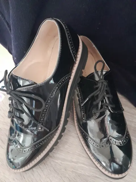 Zapatos tipo Oxford charol 24. Hermosos zapatos de charol tipo Oxford, con agujetas, usados una vez, sin detalles, no deagate en la suela.