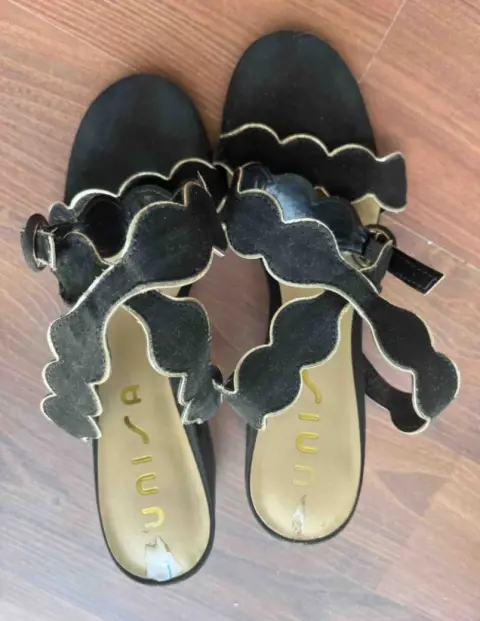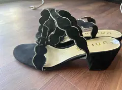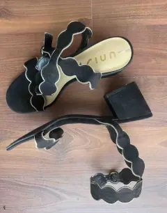 Bonitos huaraches terciopelo de tobillo #24.5 color negro con poquito dorado , se usaron solo un par de ocasiones por lo que están en excelente estado .