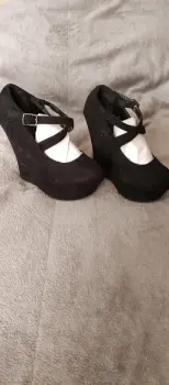 Color Rojos y color nute #2 o 2 y medioNegro cerrados de plataforma #2 o 2 y medioNegro con tacón de tiras #2 y medioTodos por $400 sin ningún detalle no están rotos, no están despegados no están raspados
