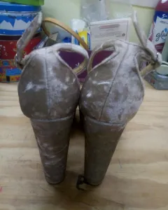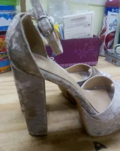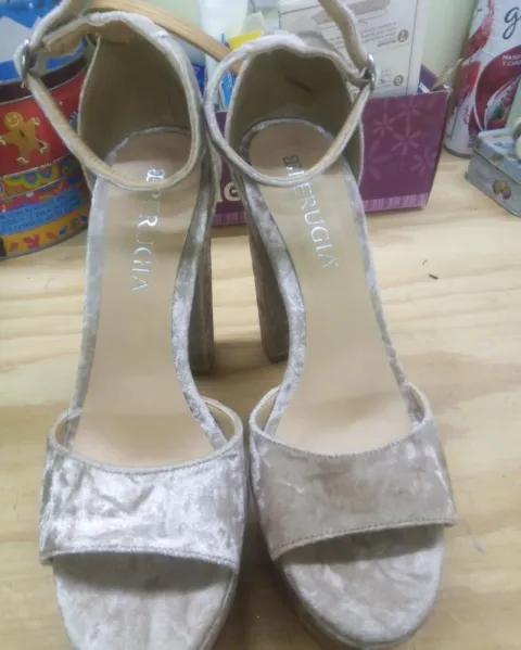 Plataformas estilo S'70 de terciopelo tornasol. La plataforma mide 4 cm y el tacón 14 cm de alto son 1/2 número más grande de lo que dice.