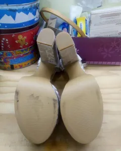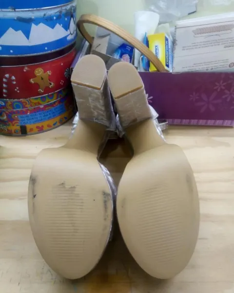 La plataforma mide 4 cm y el tacón 14 cm de alto son 1/2 número más grande de lo que dice.