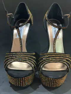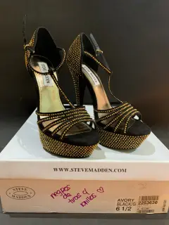 Sandalias de plataforma Steve Madden 3.5. Hermosas sandalias de fiesta Steve Madden negras con brillos dorados nuevas 3.5 ❤️❤️❤️ perfectas para usar con jeans y con un vestido de fiesta