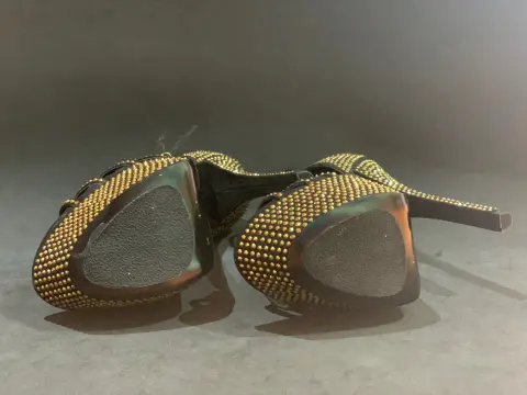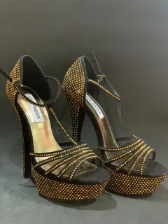 Hermosas sandalias de fiesta Steve Madden negras con brillos dorados nuevas 3.5 ❤️❤️❤️ perfectas para usar con jeans y con un vestido de fiesta
