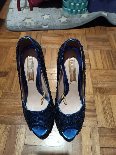 Tacones azules. Tacones azules MARCA LOB con lentejuelas, sinceramente ya no aguanto agujas delgadas más que puro tacón grueso. Se ven lindos para fiesta o cualquier evento.