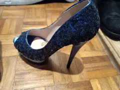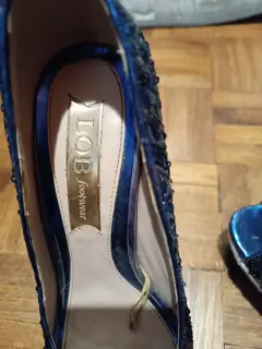 Tacones azules MARCA LOB con lentejuelas, sinceramente ya no aguanto agujas delgadas más que puro tacón grueso. Se ven lindos para fiesta o cualquier evento.