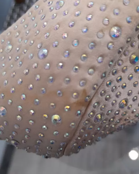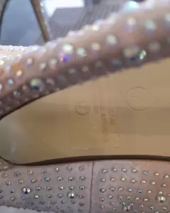 Lucen hermosos, tacon de 12 cm. Con su plataforma. No les falta ninguna piedra. Color más beige que blanco.Comprados en El Paso TX. En Ross.