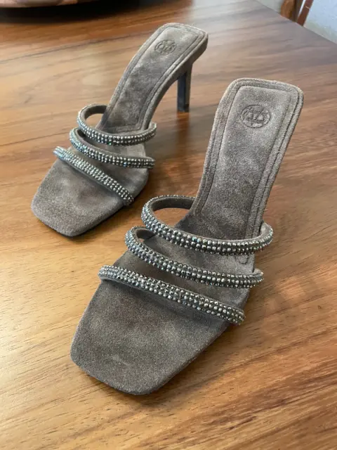 Zapatilla Massimo dutti. Zapatilla con 7 cms de tacón. Cubierta completamente en ante gris con aplicaciones . El zapato queda muy Justo a un número 23