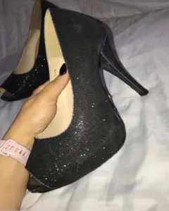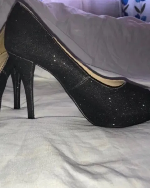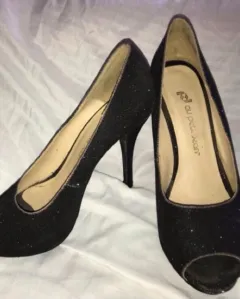 Zapatillas color negros con tipo destellos en diamantina, talla 5, marca petit jean, están bien cuidados se usaron solo 1 ves y por pocas horas