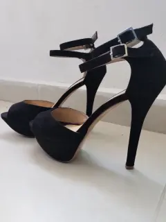 Zapatilla plataforma negra. Lindas zapatillas de plataforma negras gamuza buen estado numero 26 solo dos puestas