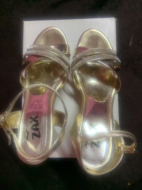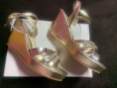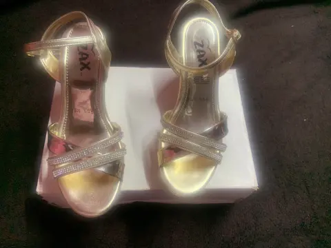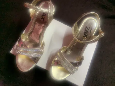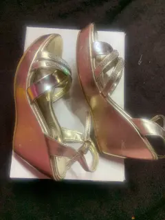 Zapatilla dorada número 4 1/2 una sola puesta están en perfectas condiciones.