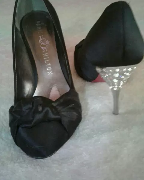 Zapatillas. Zapatillas de tacon delgado y con pedreria en la parte de atras del tacon