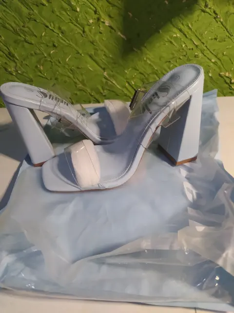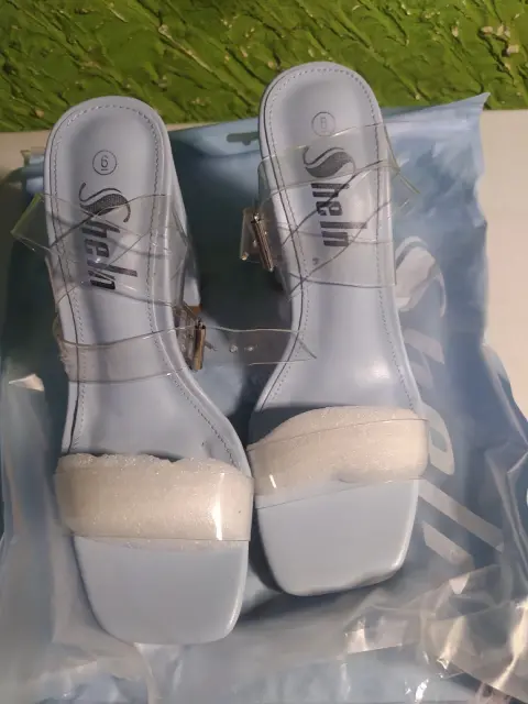 Zapatillas azules con transparencia. Son zapatos de Shein semi nuevos con tacón del número 10, un poco manchados de la suela pero están en perfecta condiciones son del número 3 y no lastiman de ninguna parte del pie