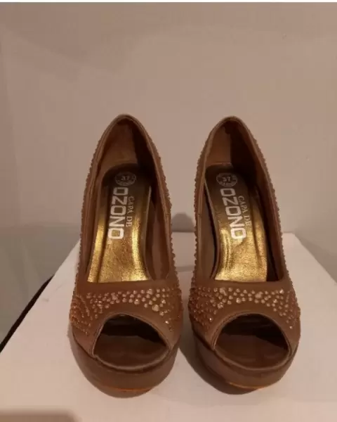 Zapatillas con pedrería. Zapatillas con pedrería, tacón 12 cm, marca Capa de ozono