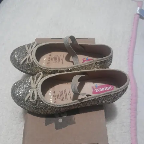 Zapato para niña color dorado número 20 vienen un poco reducidos quedan bien a número 19, solo se usaron un rato.
