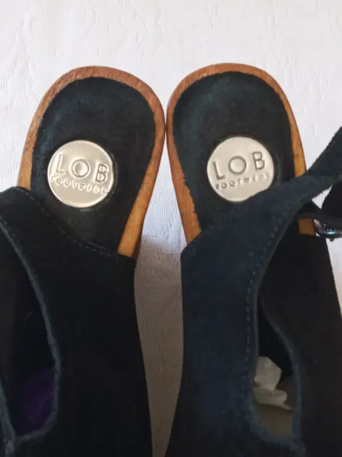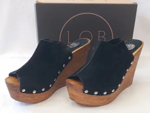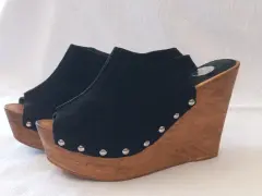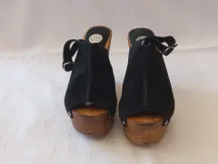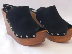 Bonitos zapatos suecos de gamuza negros, talla 6 mexicano
