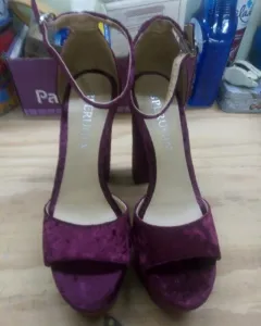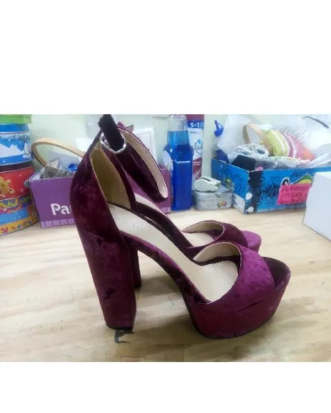 Zapatos con plataforma S'70 de terciopelo tornasol. Son 1/2 número más grande de lo que dice.La plataforma mide 4 cm y el tacón 14 cm.