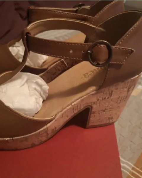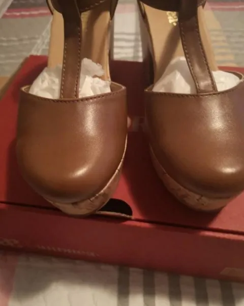 Zapatos Andrea con Plataforma. Zapatos café número 23.5, marca Andrea, tacon cuadrado de 9cm, plataforma de 3cm, con correa ajustable 👞 , muy padres para esta próxima temporada, se ven fabulosos con lo que te pongas 🌼.