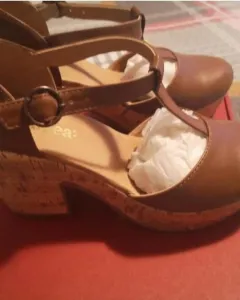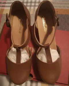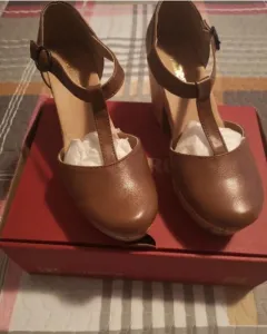 Zapatos café número 23.5, marca Andrea, tacon cuadrado de 9cm, plataforma de 3cm, con correa ajustable 👞 , muy padres para esta próxima temporada, se ven fabulosos con lo que te pongas 🌼.