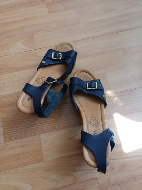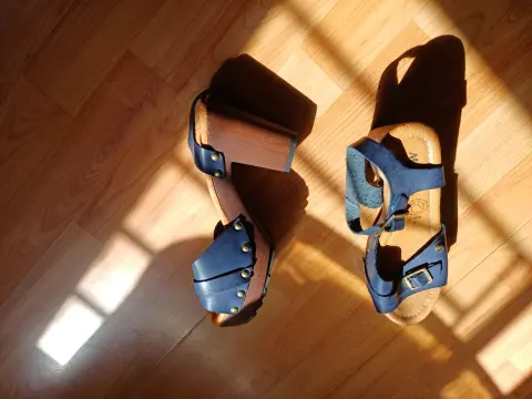 Zuecos de correa. De tiras, tacón de 10cms, cómodos y vistosos, se ven muy bonitos