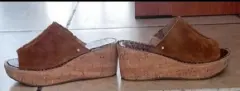Zuecos de gamuza. Lindos zuecos color marrón, talla 3, material,gamuza, plataforma de corcho, suela de goma, plataforma 7 y 3 cm, son usados ,están un poco pisados de la suela,lo demás viene en perfectas condiciones.