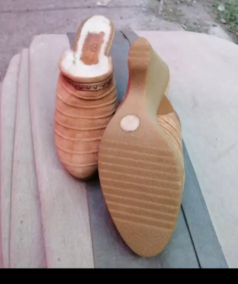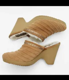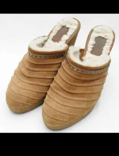 Bonitos zuecos de gamuza, muy cómodos y calentitos, alto del tacón 9cm y suela de goma, en excelentes estado